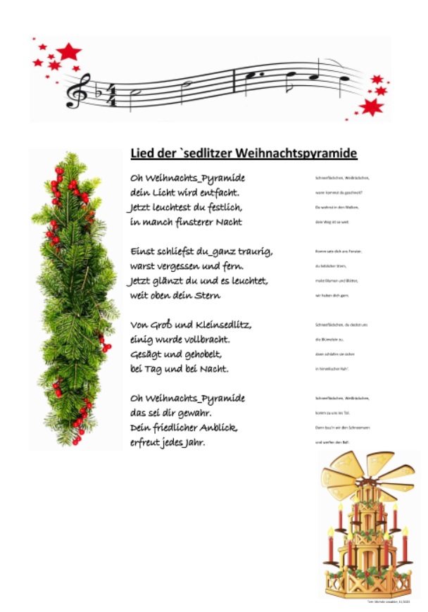 Hier das Lied der Weihnachtspyramide zum ausdrucken: Lied der Weihnachtspyramide final